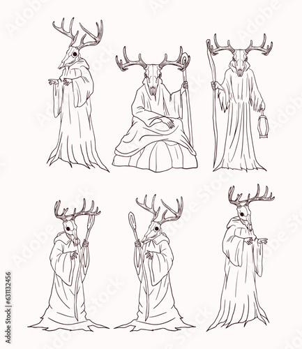 © Akhmad, Fototapeta premium vector sketch of a ghostly creature with a deer skull