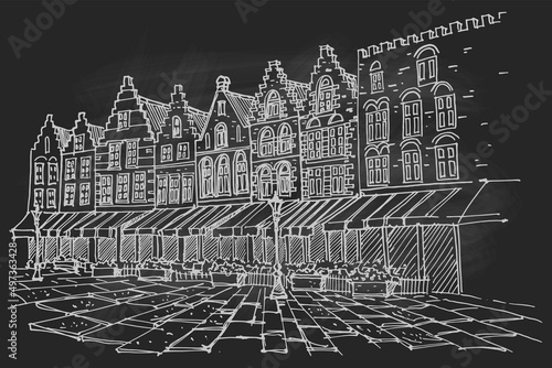 Fototapeta premium Vector sketch of Traditional architecture in the town of Bruges (Brugge),...