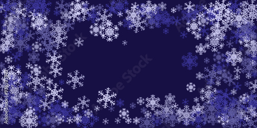 © Natallia, Fototapeta premium Vector snowflakes. Snowfall, snow. Snowflakes on an isolated background. Snowfall sky white teal blue background. Many snowflakes february vector.