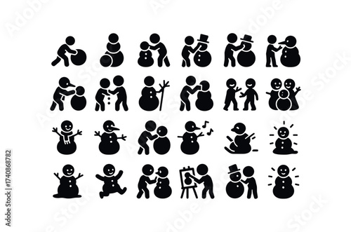 Naklejka premium vector solid black filled icons Snowmen (Scenes) snowman, rolling, stacking,...