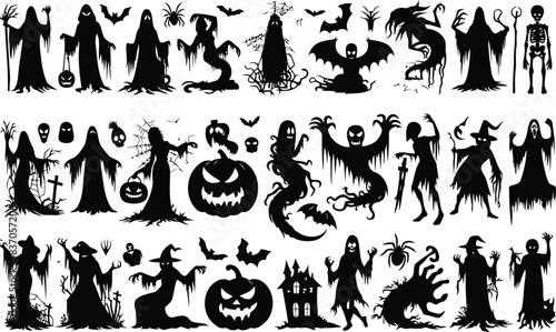 Fototapeta premium Vector Spooky Halloween Silhouettes Sublimation collection in different poses