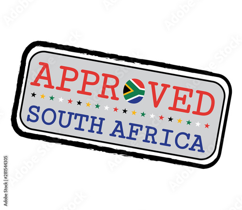 © Achisatha, Fototapeta premium Vector Stamp of Approved logo with South Africa Flag in the shape of O and text South Africa.