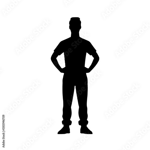 Obraz premium Vector Standing Man Silhouette Front View Casual Wear Hands on Waist Confident Posture