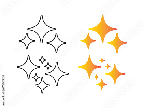 Obraz premium Vector star and geometric shape icons set. Black sparkles silhouette vector illustration outline design