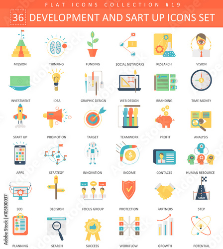 © lembergvector, Fototapeta premium Vector startup and development color flat icon set. Elegant style design.