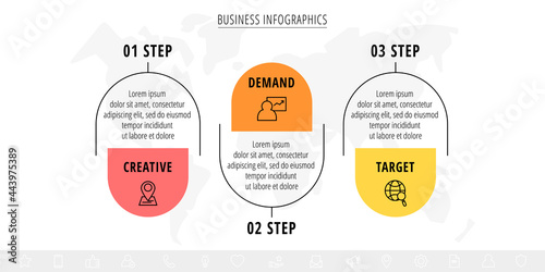 © evseev_tim, Fototapeta premium Vector 3 step line infographic labels with icons and squares. Modern timeline concept for chart, levels, web, diagram, banner, presentations, business, diagram, flowchart