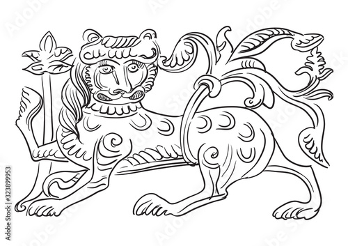 © alinart, Obraz premium Vector stone lion 7