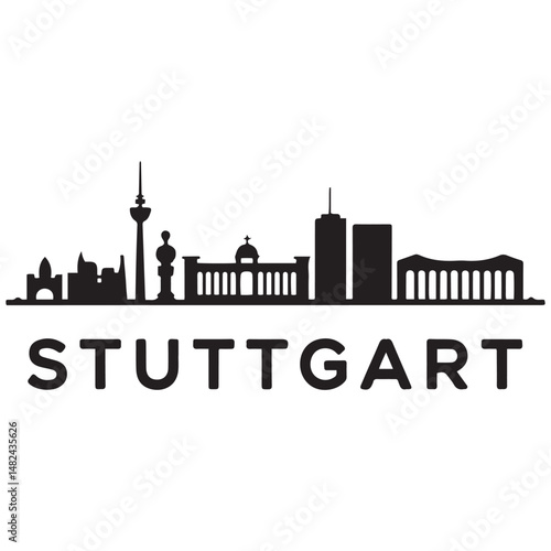 Fototapeta premium Vector Stuttgart skyline. Travel Stuttgart famous landmarks. Business and tourism concept for presentation, banner, web site. Vector black silhouette. with white background