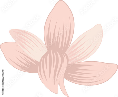 Naklejka premium Vector-style six-petaled coral and peach flower is floating on transparent...