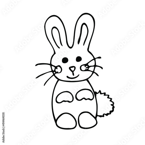 © Liliya, Obraz premium Vector sweet rabbit, bunny Happy easters day black and white isolated, hand drawning, for card, spring holliday