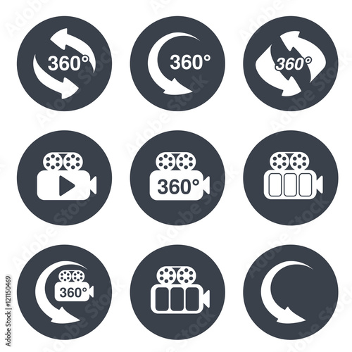 © Rena Design, Fototapeta premium Vector symbols for virtual tour, circle grey labels - buttons with arrows and camera