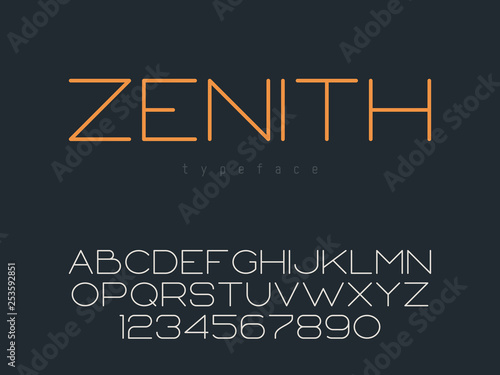 Fototapeta premium Vector thin line uppercase font. Latin alphabet letters and numbers
