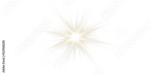 Naklejka premium Vector transparent sunlight with sun glare. Overlay, Sun rays and glare, Sun, sunrays, light transitions, lens flare, light leaks and glare in PNG format. PNG sunlight flare. Golden flash and glare.