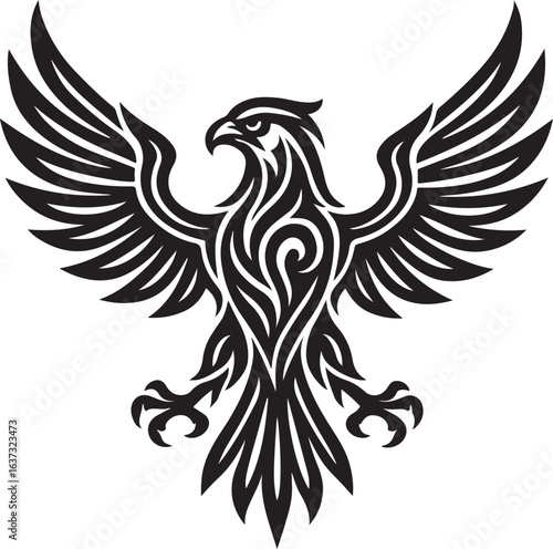 © Maruf, Fototapeta premium Vector tribal tattoo illustration of a flying eagle with spread wings and feathers