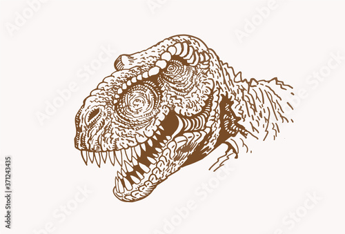 © Vita, Obraz premium Vector vintage tyrannosaurus , sepia background, graphical illustration, dinosaur