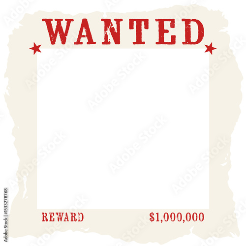 © vectorfusionart, Fototapeta premium Vector WANTED poster is showing torn edges, red stars, $1M reward, slot, transparent background