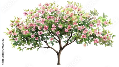 © Royal, Fototapeta premium Vector Watercolor Blooming Flower Tree on White Background