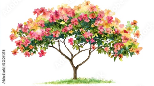 © Royal, Obraz premium Vector Watercolor Blooming Flower Tree on White Background