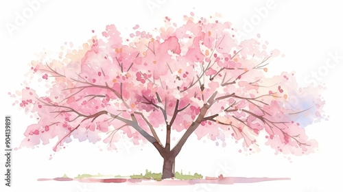 © fourtakig, Fototapeta premium Vector watercolor pink sakura tree side view isolated on white background for landscape and architecture drawing,elements for environment or garden,botanical element