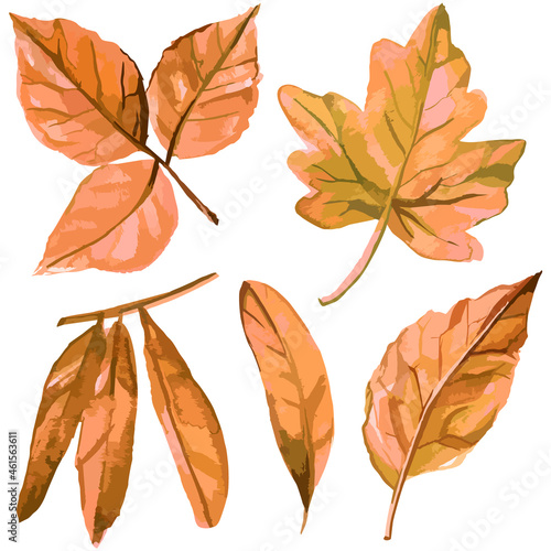 © mimibubu, Fototapeta premium Vector watercolor style set of illustrated fall leaves