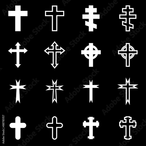 © skarin, Obraz premium Vector white crosses icon set