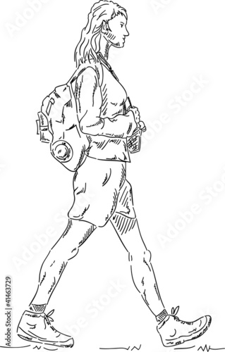 © Pavel Bortel, Fototapeta premium vector - woman on a trip, isolated on background