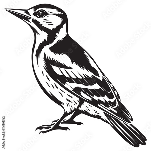 © Deeply designed123 , Naklejka premium Vector Woodpecker Silhouette Minimalist Bird Illustration