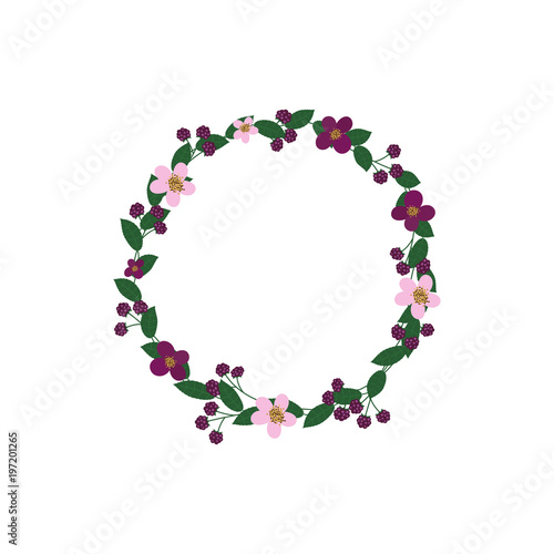 Obraz premium Vector wreath with flowers and raspberry.