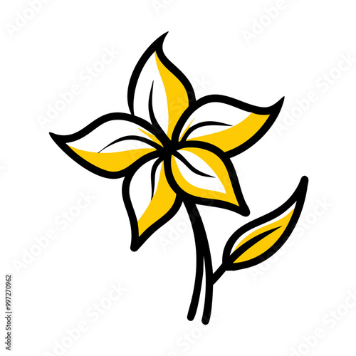 © Kiss, Fototapeta premium Vector Yellow Flower Illustration with Stylized Black Outline Design