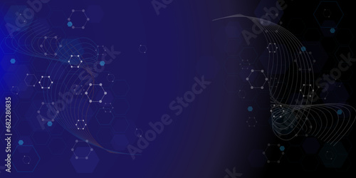 Fototapeta premium Vectors, Abstract futuristic hexagons for network connection, communication, computer and Technology on dark blue background.