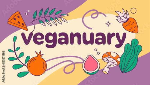 © LaVika, Naklejka premium Veganuary celebration: embrace a plant-based lifestyle with delicious foods