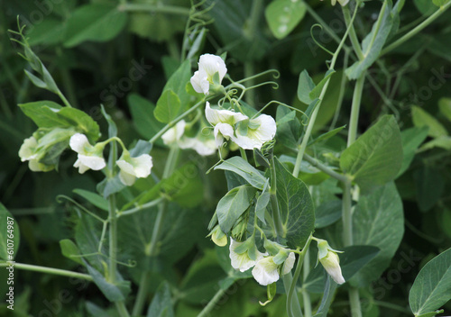 © orestligetka, Obraz premium Vegetable peas bloom in open ground