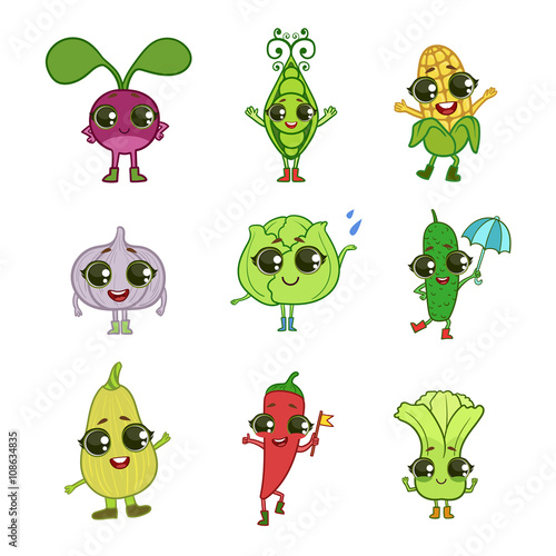 © topvectors, Obraz premium Vegetables Cartoon Characters Collection