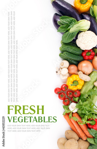 © primopiano, Naklejka premium Vegetables close-up with space for text.