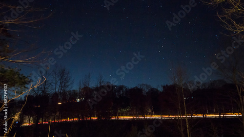 © Richard, Fototapeta premium Vehicle Light Streaks by a Side of a Hill at Night, Baltic, Ohio