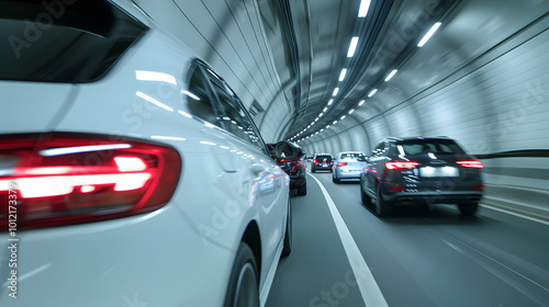 Obraz premium Vehicles Driving Through an Urban Tunnel | Dynamic City Traffic in a Modern...