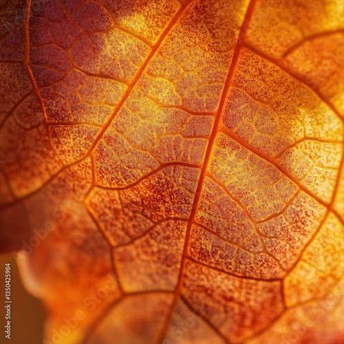 © Chirayu, Obraz premium Veins of Autumn Leaf Macro Shot Abstract Pattern Displaying Natural Beauty in Fall Colors Detailed