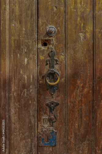 Fototapeta premium Velha porta de madeira com várias fechaduras para garantir maior segurança