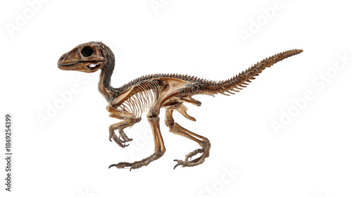 © Tony A, Obraz premium Velociraptor skeleton fossil in dynamic pose