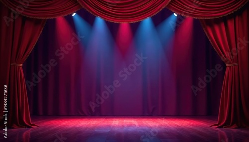 Fototapeta premium Velvet curtain, stage lights, theater, performance Ready for the show , musical, setting, red curtain
