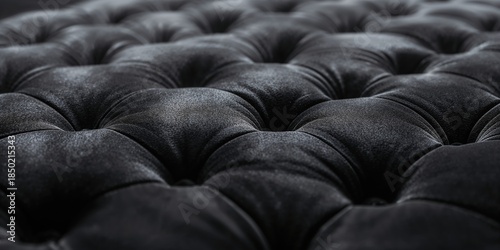 Fototapeta premium Velvet upholstery with quilted fabric texture in charcoal grey, suitable for furniture design and interior decor, neutral background