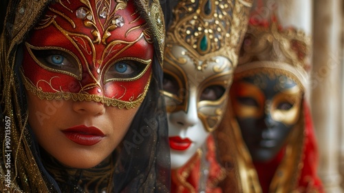 Fototapeta premium Venetian masks with ornate details - generative ai