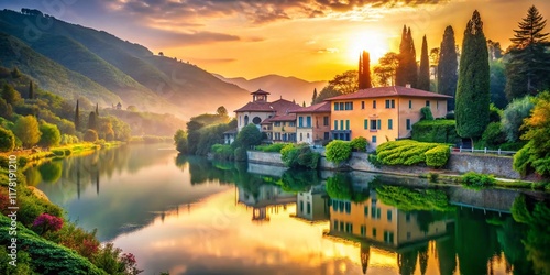 Fototapeta premium Venetian Villa, Brenta River, Italian Landscape, Spring, Sunrise