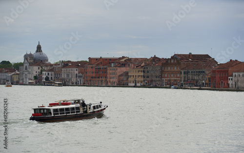 Obraz premium Venetian water bus crusing in canal between Dorsoduro and Guidecca. Venice - 6 May, 2019