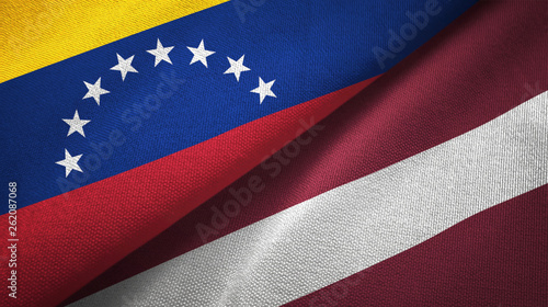 © Aleks Taurus, Fototapeta premium Venezuela and Latvia two flags textile cloth, fabric texture