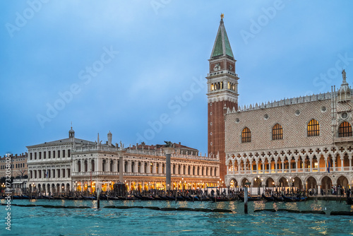 Fototapeta premium Venice at dusk with soft lights illuminating San Marco Square