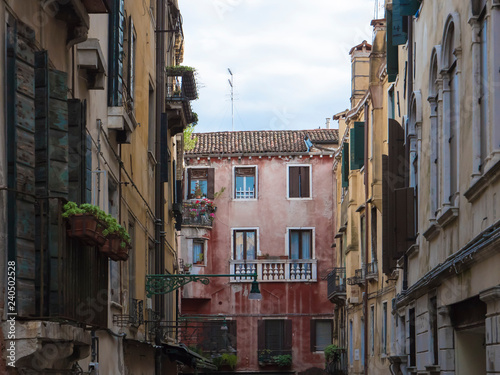 Fototapeta premium VENICE, ITALY, Nov 1st 2018: Renaissance architecture closeup perspective exterior or facade view on venetian street or inside garden. Nobody