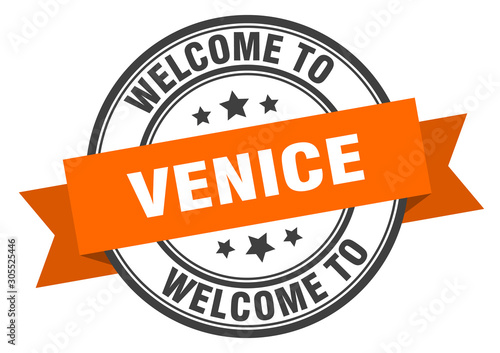 © Aquir, Fototapeta premium Venice stamp. welcome to Venice orange sign