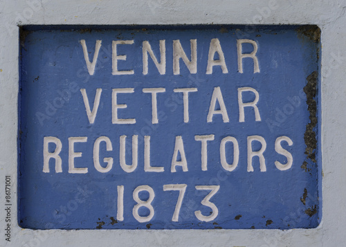 © Klodien, Fototapeta premium Vennar Vettar sign on the dam of the rivers.