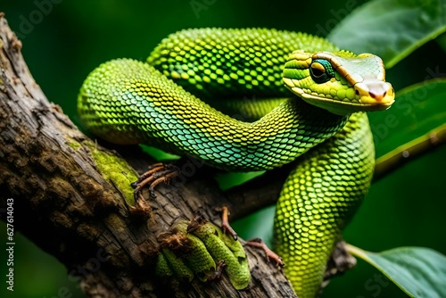 Fototapeta premium Venomous Bush Viper snake in tree female